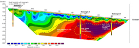 Untersuchung des SchichtenaufbausOrtung von Auflockerungszonen Kartierung von Festgesteinsoberkante Flächen- und volumenhafte Erfassung von Auffüllungsbereichen Gefahrabschätzung bei Rutschungsflächen (Muren, Hangrutschungen) |